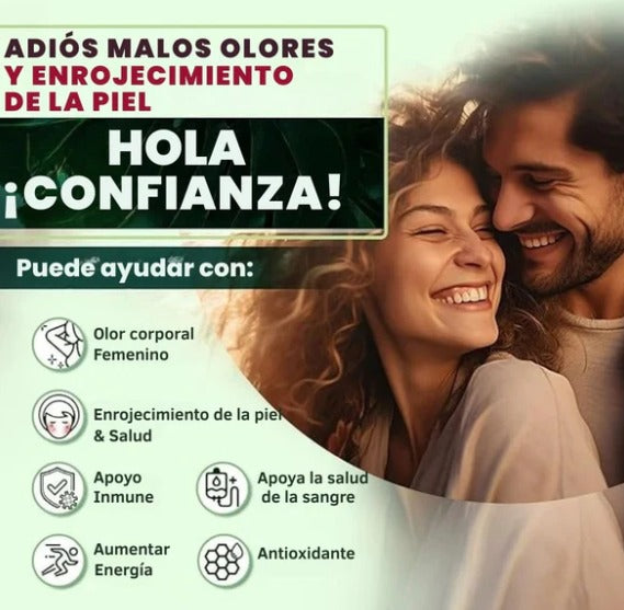 Combate los olores corporales y el mal aliento desde la raíz, sin necesidad de productos químicos externos, ofreciendo una solución duradera y natural.